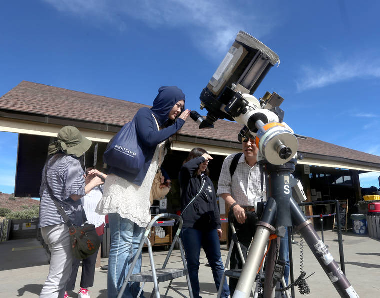 Tribune-Herald file photo Tourists look through a telescope in September 2017 at the Maunakea Visitor Information Station.
