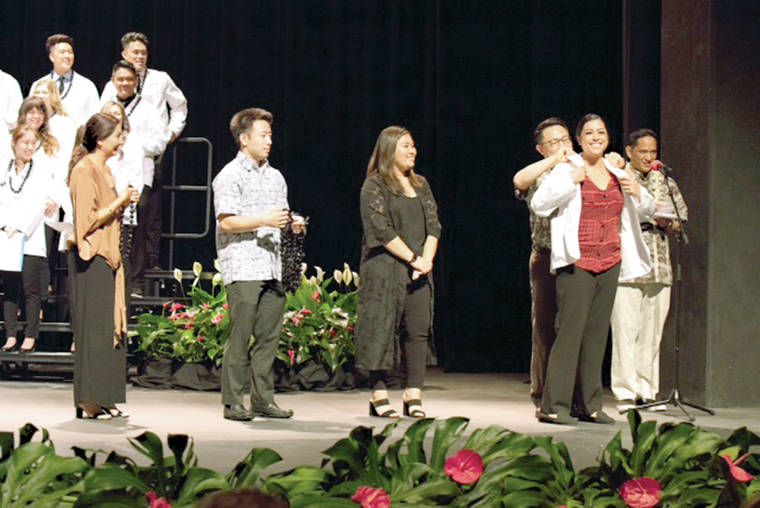 Forty-eight first-year University of Hawaii at Hilo student pharmacists recited the Oath of a Pharmacist during the Daniel K. Inouye College of Pharmacy’s White Coat Ceremony on Oct. 13 at the UH-Hilo Performing Arts Center.