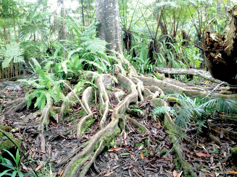 The sanctuary is a 70-acre forest dedicated to teaching living forest-friendly and reminding folks that our forests are the lungs of the planet. Most of the land is native forest, but 15 acres that were originally pasture are now totally reforested with a variety of plants and trees donated by plant societies and the state Department of Land and Natural Resources Division of Forestry and Wildlife. Once the aggressive kikuyu grass was suppressed by shade, many native plants began to re-establish themselves.