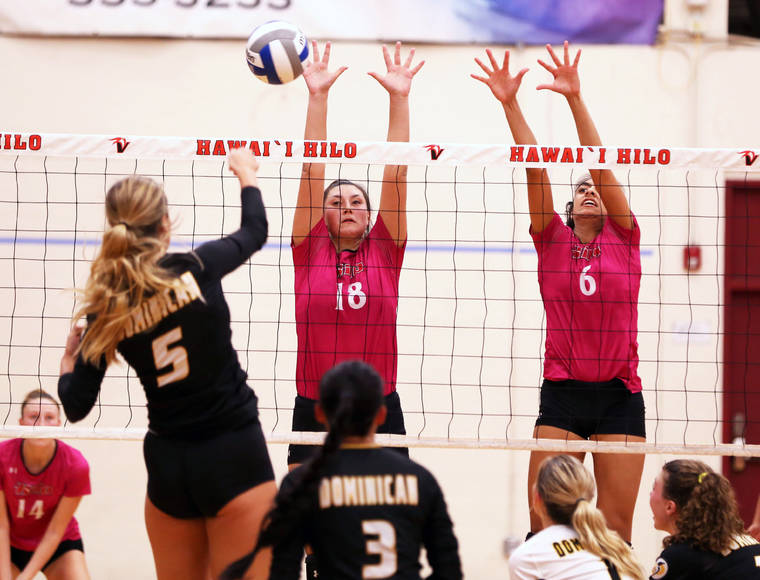 UHH (15-5 overall, 10-2 PacWest) was outblocked by Dominican (1-16, 1-11), which has lost 10 straight, 10-9. But that didn’t matter much because the Vuls posted a higher sideout percentage in every set.