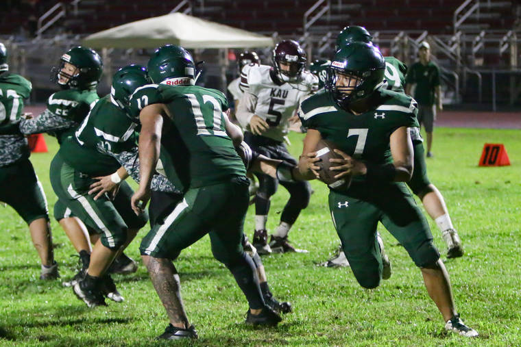 BIIF football: Pahoa, Ka’u light up scoreboard as Trojans win 56-50