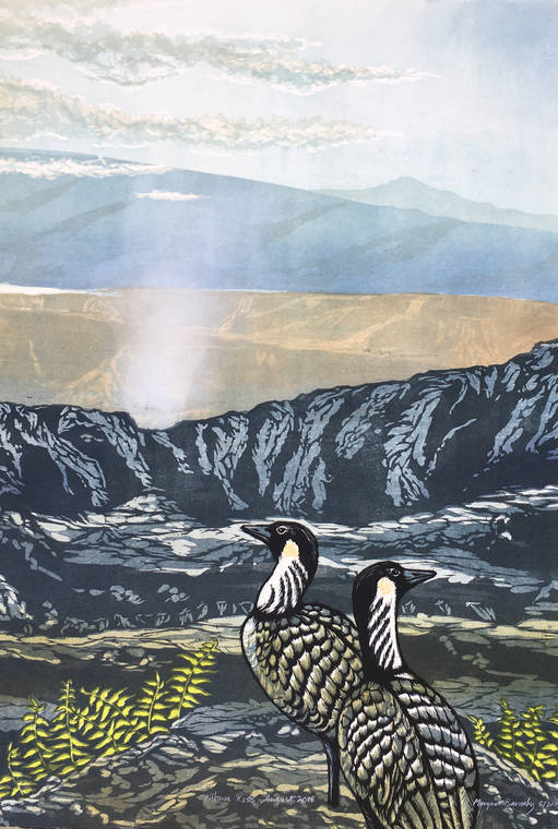 “Hawai‘i Nei” is a juried art exhibition celebrating the native flora and fauna of Hawaii Island hosted by the Three Mountain Alliance, the Hawai‘i Island Art Alliance, the state Department of Land and Natural Resources Natural Area Reserves System and Wailoa Center.