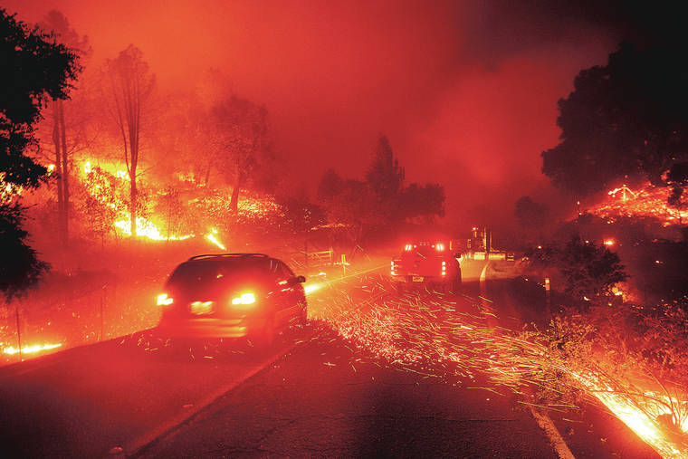 GEYSERVILLE, Calif. — Fast-growing fires throughout California forced tens of thousands of people to evacuate their homes Thursday as dry winds and high heat fed flames and fears in the state still jittery from devastating wildfires in the past two years.