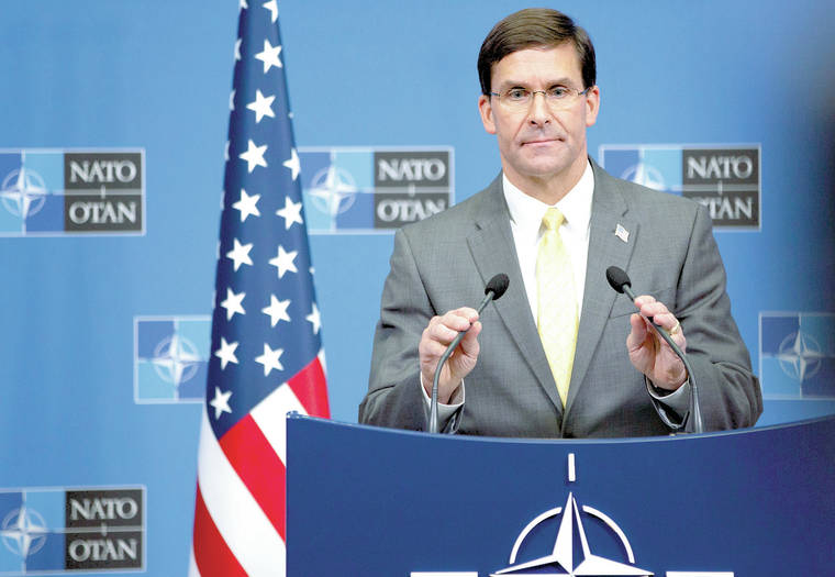 Esper spoke at a news conference at NATO headquarters in Brussels, where he consulted with American allies.