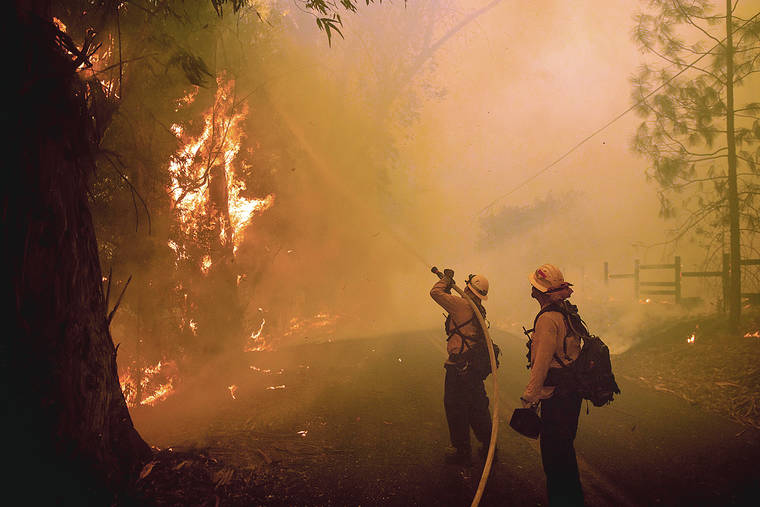 SANTA ROSA, California — With ferocious winds driving multiple wildfires through bone-dry vegetation and nearly 200,000 people ordered to leave their homes, California’s governor declared a statewide emergency Sunday. Meanwhile, millions of residents remained without power after the state’s largest utility cut electricity as a precaution to prevent more areas from igniting.