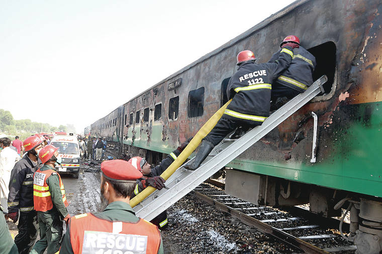 MULTAN, Pakistan — A raging fire swept through a train in Pakistan’s eastern Punjab Province on Thursday, killing 74 people, and survivors said afterward it took nearly 20 minutes for the train to stop amid contradictory reports about the condition of the train’s brakes.