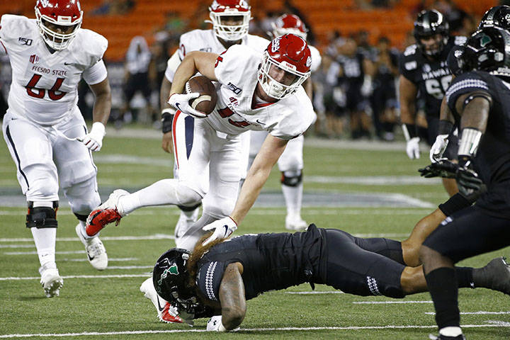 Chevan Cordeiro, who replaced starting quarterback Cole McDonald midway through the fourth quarter, connected with Nick Mardner for a 50-yard gain to the 3 and, on the next play, Miles Rees scored on a 3-yard run to trim Hawaii’s deficit to 38-31 with 2:13 remaining. The Rainbow Warriors (5-4, 2-3) recovered the ensuing onside kick and Cordeiro’s 10-yard touchdown run tied it with 65 seconds to play. Reyna had a 17-yard run, hit Rice for gains of 5 and 9 yards and then ran for 11 yards to move the Bulldogs into Hawaii territory. After back-to-back incomplete passes, Rivers ripped off a 13-yard run to the 20 that set up Silva’s winning field goal.