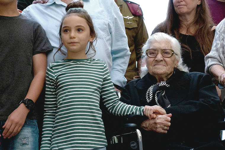 JERUSALEM — One by one, the 40 descendants of a group of Israeli siblings leaned down and hugged the elderly Greek woman to whom they owe their very existence, as she sat in her wheelchair and wiped away tears streaking down her wrinkled face.