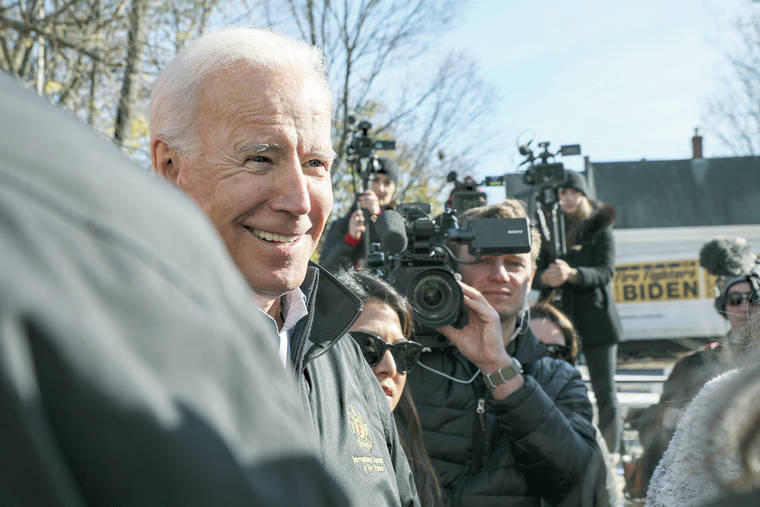 During a campaign stop in southeast Iowa, Biden noted that he carries with him every day the totals of those who have died as a consequence of wars in Iraq and Afghanistan.