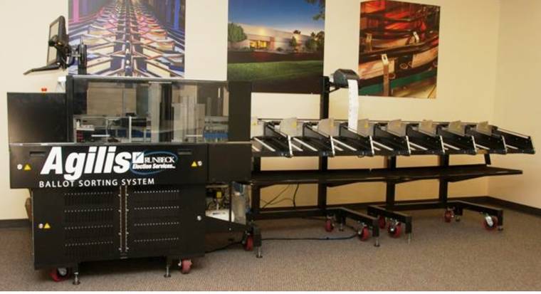 Runbeck ballot sorting machine. Copyrighted photo used with permission from Runbeck Election Services Inc.