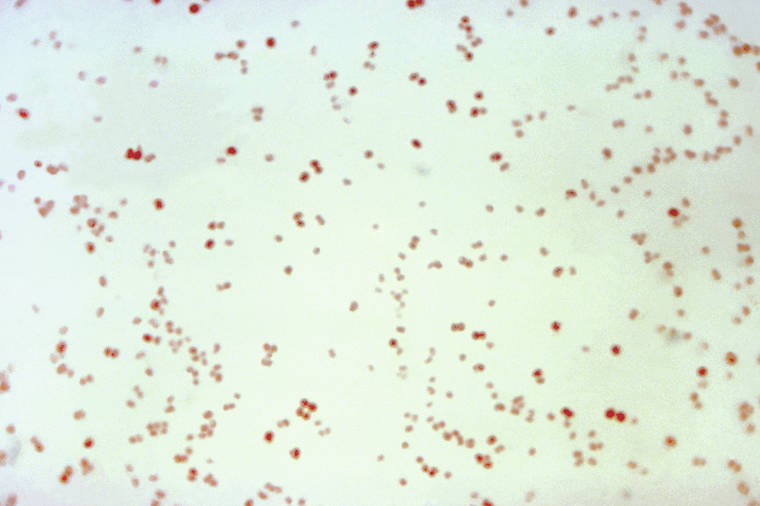 This 1971 microscope image made available by the Centers for Disease Control and Prevention shows Neisseria gonorrhoeae bacteria, which causes the sexually transmitted disease gonorrhea. In a report released Wednesday, Nov. 13, 2019, the Centers for Disease Control and Prevention estimated about 36,000 Americans died from drug-resistant infections in 2017 _ down about 18% from an estimated 44,000 in 2013. Though deaths may be going down, non-fatal infections increased nationally from 2013 to 2017, from 2.6 million to 2.8 million. Dramatic increases in drug-resistant gonorrhea, urinary tract infections, and group A strep were largely to blame. (CDC via AP)