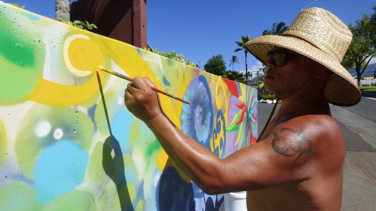 KAILUA-KONA — Four local artists have worked diligently this week to replace an old mural in the center of Kailua-Kona and bring a new work of art to life.