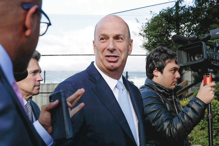 The July 26 call between Trump and Gordon Sondland was first described during testimony Wednesday by William Taylor, the acting U.S. ambassador to Ukraine. Taylor said one of his staffers overhead the call while Sondland was in a Kyiv restaurant the day after Trump’s July 25 phone call with Ukrainian President Volodymyr Zelenskiy that triggered the House impeachment inquiry.