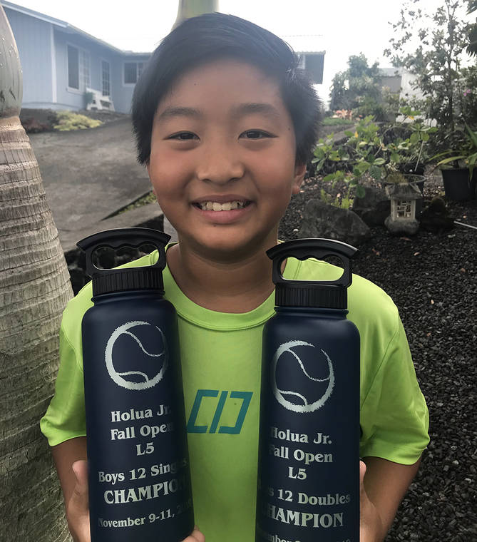 The Hilo 11-year-old won not one but two titles, taking singles and doubles, competing in the 12s division at Holua Jr. Fall Open in Kailua-Kona.