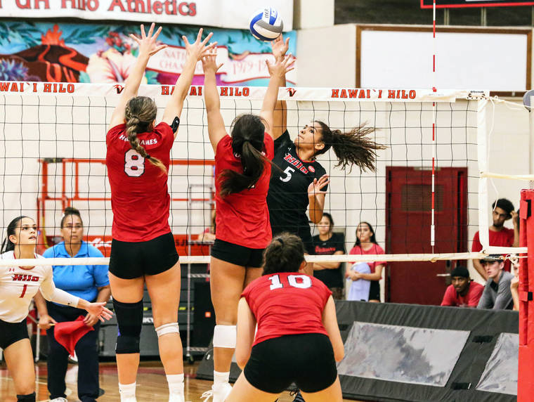 Kaila Lizama had 17 digs, and setter Kendall Kott had a double-double with 24 assists and 12 digs for UHH, which outblocked Holy Names, 6-4.