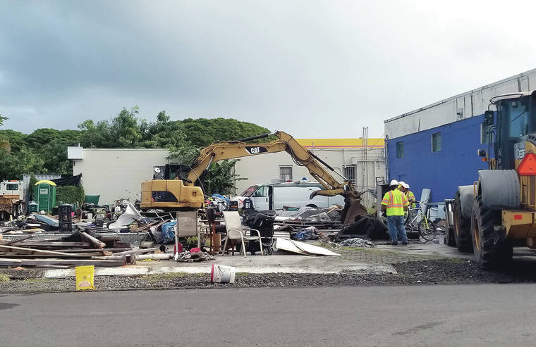 At 6 a.m. Thursday, about 50 county workers and police officers arrived at a lot on Punahoa Street, between Ponahawai and Mamo streets, to clear unpermitted structures that have stood on the site since late last year.