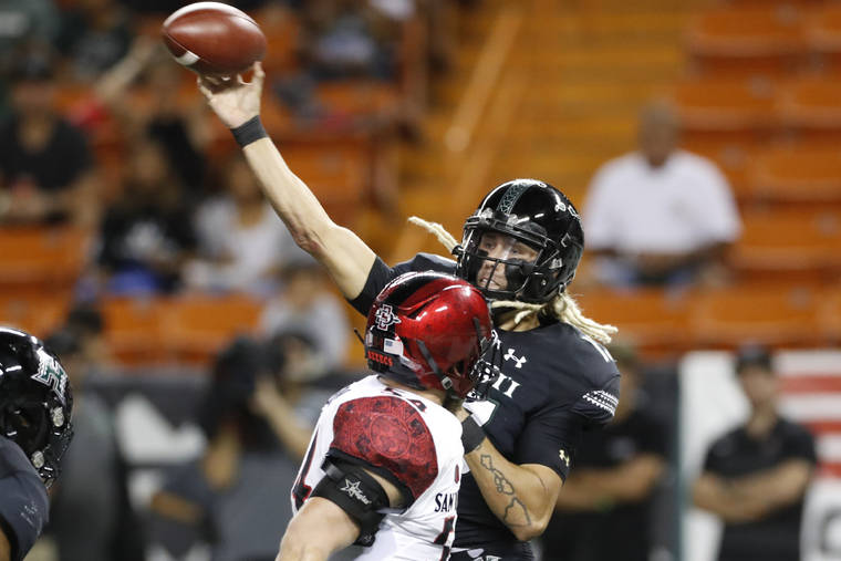 San Diego State drove 50 yards to the Hawaii 31 to set up Matt Araiza with a 48-yard attempt with 8 seconds left. Araiza missed, and Hawaii ran out the clock for the win.