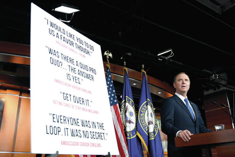 “The evidence that we have found is really quite overwhelming that the president used the power of his office to secure political favors and abuse the trust American people put in him and jeopardize our security,” Intelligence Committee Chairman Adam Schiff, D-Calif., told The Associated Press.