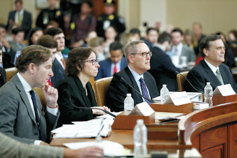 WASHINGTON — Three leading legal scholars testified Wednesday that President Donald Trump’s attempts to have Ukraine investigate Democratic rivals are grounds for impeachment, bolstering the Democrats’ case as House Speaker Nancy Pelosi made sure they’re prepared for that momentous next step.