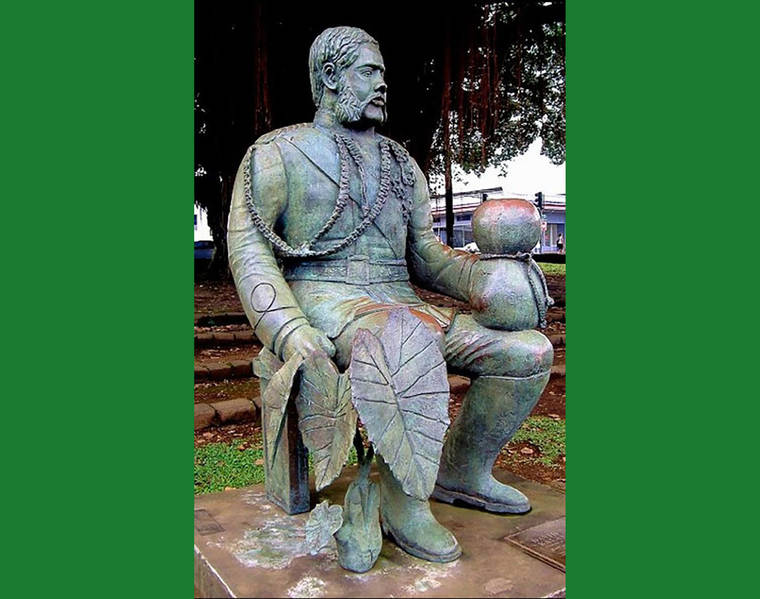Courtesy photo “King Kalakaua” (1988) by Henry Bianchini is cast bronze and stands in Kalakaua Park in Hilo.