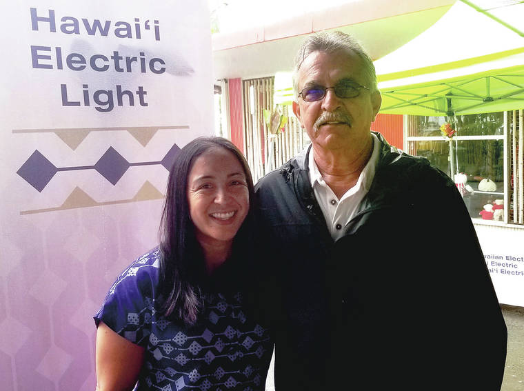 Mike Brestovansky/Tribune-Herald Fifth-generation HELCO employee Kandice Kubojiri with her father, fourth-generation HELCO employee Howard Kelly Jr.