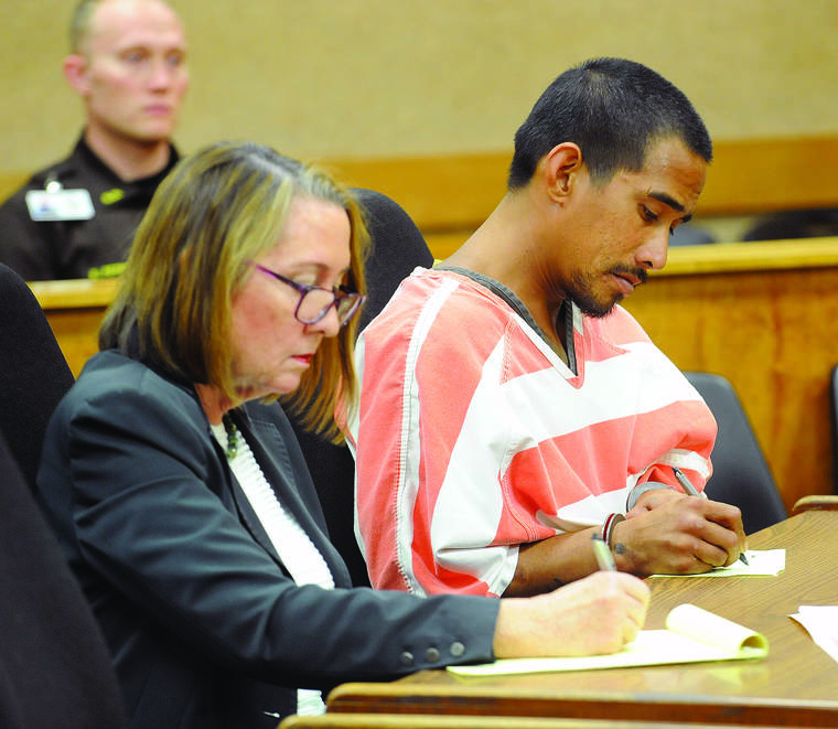 LAURA RUMINSKI/West Hawaii Today file photo Shannon Ke appears with Deputy Public Defender Ann Datta for his preliminary hearing in April in Kona District Court.