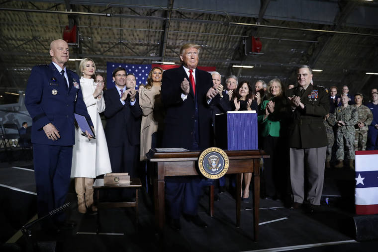 In signing the 2020 National Defense Authorization Act that includes Space Force, Trump claimed a victory for one of his top national security priorities just two days after being impeached by the House.