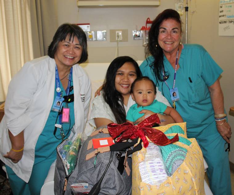 The first three babies born on Christmas were showered with gifts from the Fraternal Order of the Eagles in Keaau. In addition to a diaper bag and a hand-sewn tote stuffed with baby care items, the gifts also included at $100 gift card.