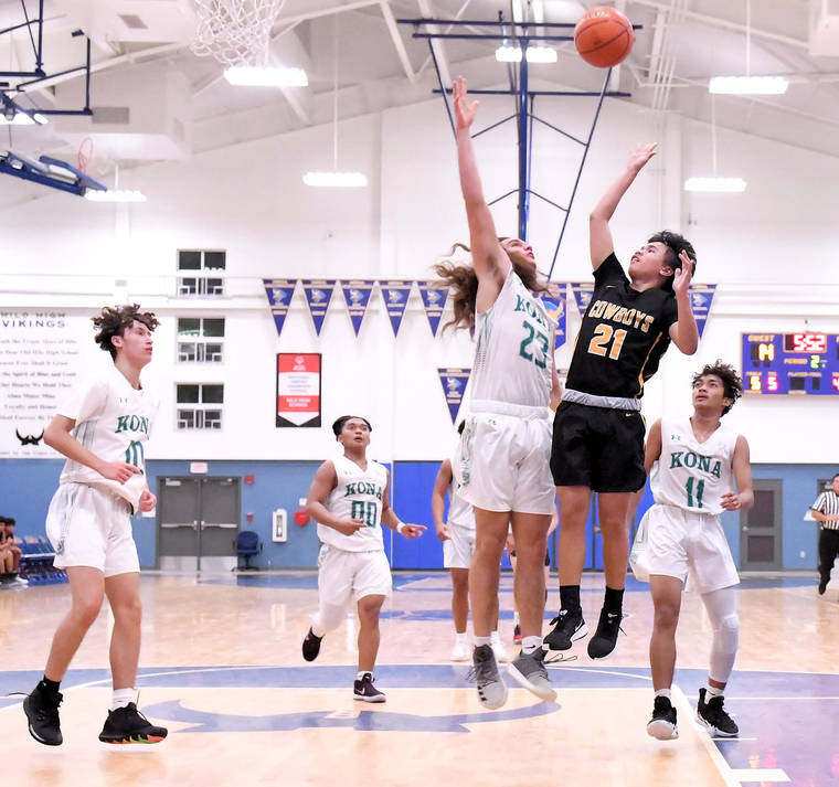 The Cowboys raced past Honokaa 79-62 in a BIIF Division II boys basketball game Monday night at Honokaa Armory.