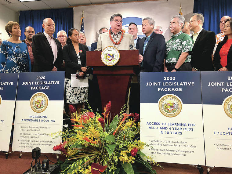 As the Hawaii Legislature gears up for the 2020 session, leaders from the state House and Senate, along with Gov. David Ige, announced on Tuesday a legislation package to tackle critical economic issues that have long-plagued Hawaii’s residents: income inequality, affordable housing and early education.