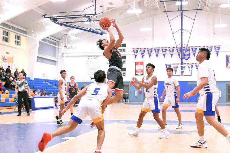 Kaukahi Alameda scored 16 points, including 13 in the second half, and Rayson Padilla had seven points to lead the Division I Vikings (5-3), who shot 32 percent from the floor, including 2 of 20 from 3-point distance.