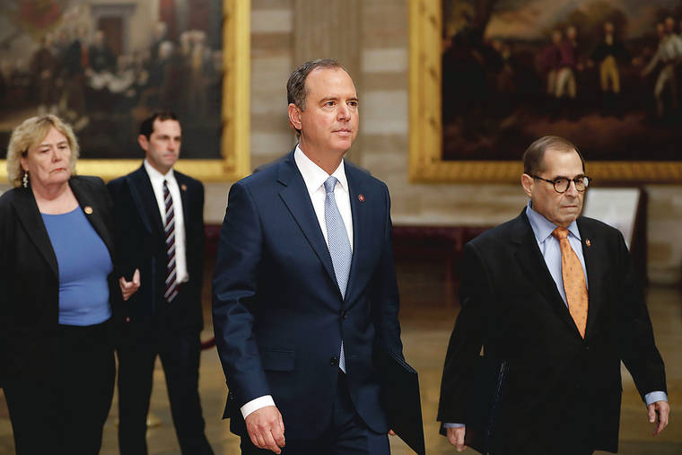 The White House is pushing an “absurdist position,” said Rep. Adam Schiff, D-Calif., the lead Democratic prosecutor of the impeachment case. “That’s the argument I suppose you have to make if the facts are so dead set against you.” Rep. Jerrold Nadler, D-N.Y., another impeachment prosecutor, called it “arrant nonsense” and said evidence of Trump’s misconduct is overwhelming.