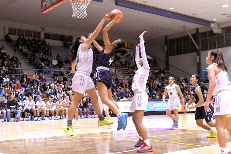 In the fourth period, Ayana Meyer swished a 3-pointer to cut Kona’s lead to 38-32 with 2:21 remaining.