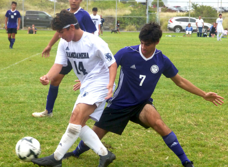 Makua Lani junior Isaiah Easley opened up the scoring in Thursday’s match before Kamehameha quickly answered behind goals from freshman Elijah Dinkel and senior Ethan Shimabukuro, with an assist by Logan Waltjen.