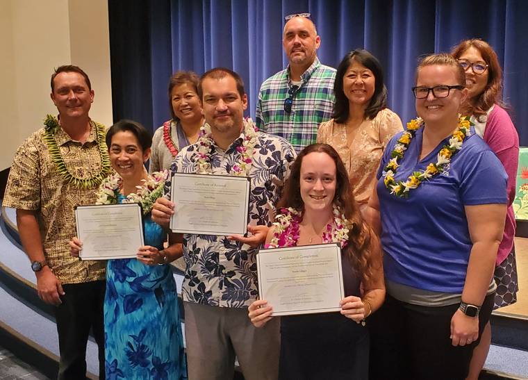 Big Island teachers who received the certification include Ana Bingham from Mountain View Elementary, Catherine Hawkins from Innovations Public Charter School, and Natalie Lalagos and Justin Brown from Kealakehe High School. Scott Oberg from Keonepoko Elementary renewed his certification.