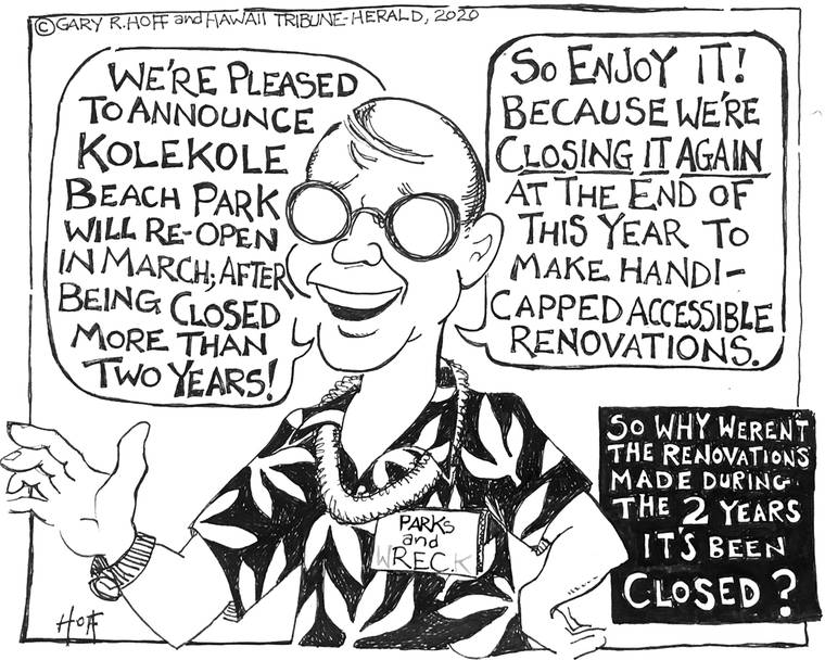 The Big Island as seen by Hawaii Tribune-Herald cartoonist Gary Hoff.