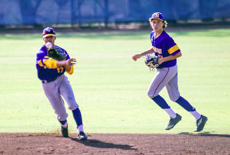 PARISH KALEIWAHEA photo Senior shortstop Maui Ahuna, left, and sophomore second baseman Xaige Lancaster form the double-play combo for defending BIIF D-I champion Hilo