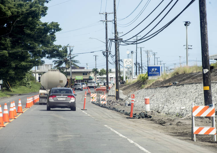 Construction on Kalanianaole Avenue is shown in this 2018 photo. (Tribune-Herald file photo)
