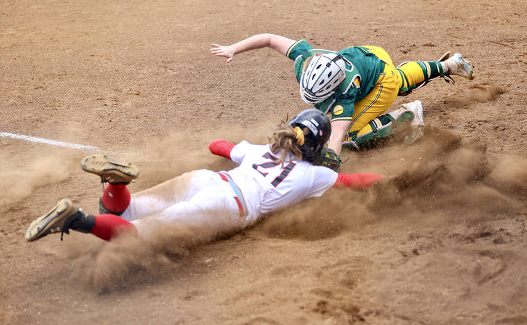 Skylar Thomas drove home Mae Kaleikini, who was hit by a pitch, with an RBI double in the third. Domingo singled home Thomas for the go-ahead run.