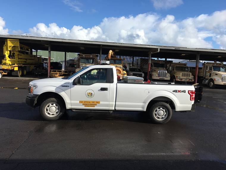 Stolen were tools and a white 2018 Ford pickup truck with a black lift-gate. The license plate is SH H626, and both doors bear the Hawaii state seal.