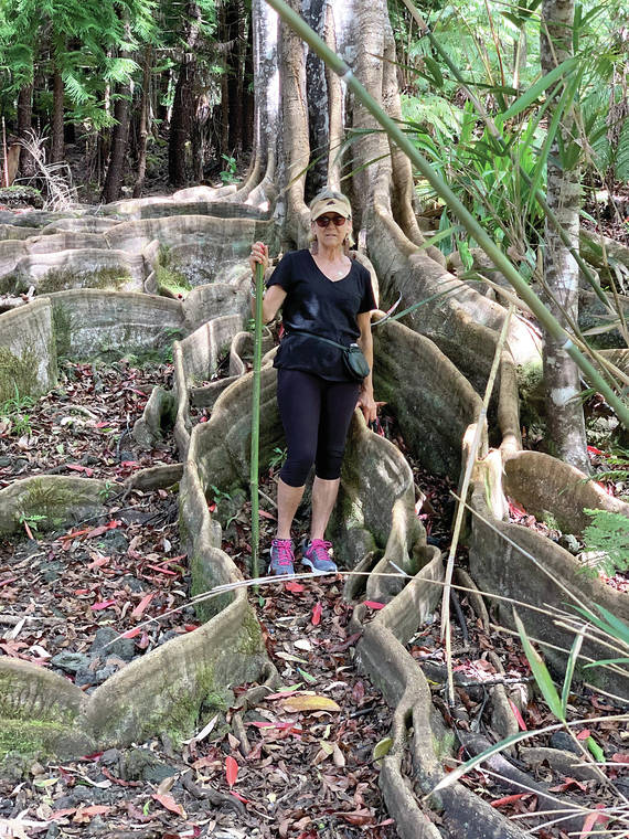 Courtesy photo The curtain buttress roots of Blue Marble Trees ( Elaeocarpus grandis) create a living sculpture as they rise above the soil surface three feet or more.