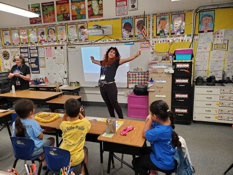 Little hands pounded on their desks, a drum roll for lift off last Wednesday in Traci Urasaki’s first-grade class at E.B. de Silva Elementary School.