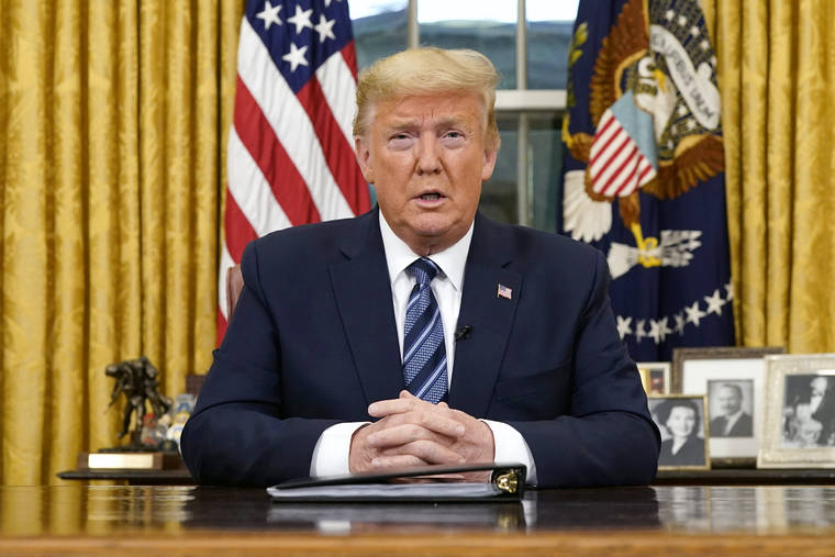 WASHINGTON — Taking dramatic action, President Donald Trump announced Wednesday he is sharply restricting passenger travel from 26 European nations to the U.S. and moving to ease the economic cost of a viral pandemic that is roiling global financial markets and disrupting the daily lives of Americans.