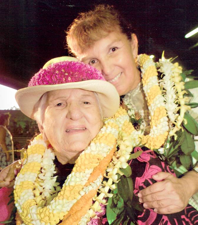 Merrie Monarch Festival President Luana Kawelu, right, with her late mother, Dorothy "Aunty Dot" Thompson, the hula competition's founding mother.