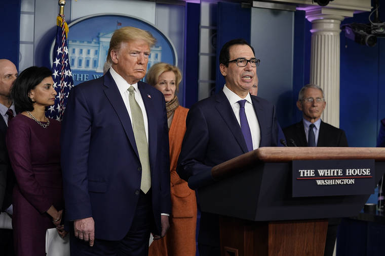 WASHINGTON — In a massive federal effort, President Donald Trump asked Congress to speed emergency checks to Americans, enlisted the military for MASH-like hospitals and implored ordinary people — particularly socially active millennials — to do their part by staying home to stop the spread of the coronavirus.
