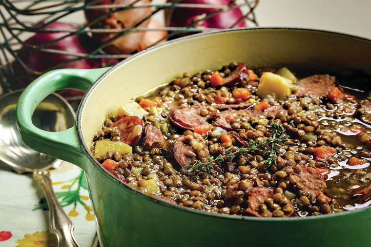 Lentils don’t require soaking and cook in just 20 minutes on your stovetop. Smoked paprika, whether hot or mild, is an excellent addition, if you have it; add it with the optional smoked sausage and garlic.