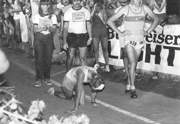 “Spasmodically, she staggered the 20 yards to the finish line as if the roar of the crowd was pushing her along,” West Hawaii Today contributing writer Bill Giese Jr. wrote in his Feb. 9, 1982, article on the race. “Again she tried to run the final steps but again she fell.