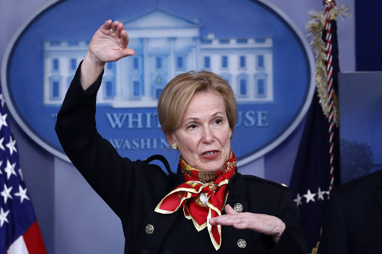Birx said pandemic forecasts initially predicted 1.5 million to 2.2 million deaths in the U.S. But that was a worst-case scenario, without efforts to slow the spread of the coronavirus through social distancing.