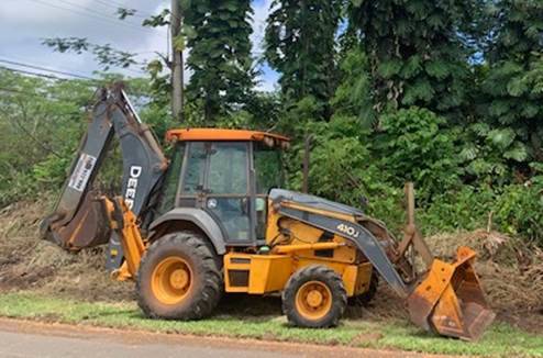 The backhoe was taken from an empty lot on 10th Avenue in Hawaiian Paradise Park subdivision between April 8-13.