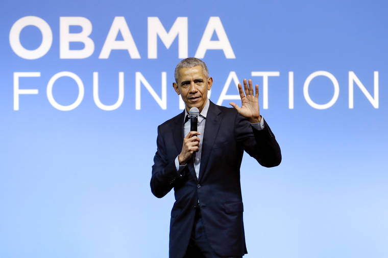 This 2019 file photo shows former President Barack Obama speaking at the Gathering of Rising Leaders in the Asia Pacific, organized by the Obama Foundation in Kuala Lumpur, Malaysia. (AP Photo/Vincent Thian, File)